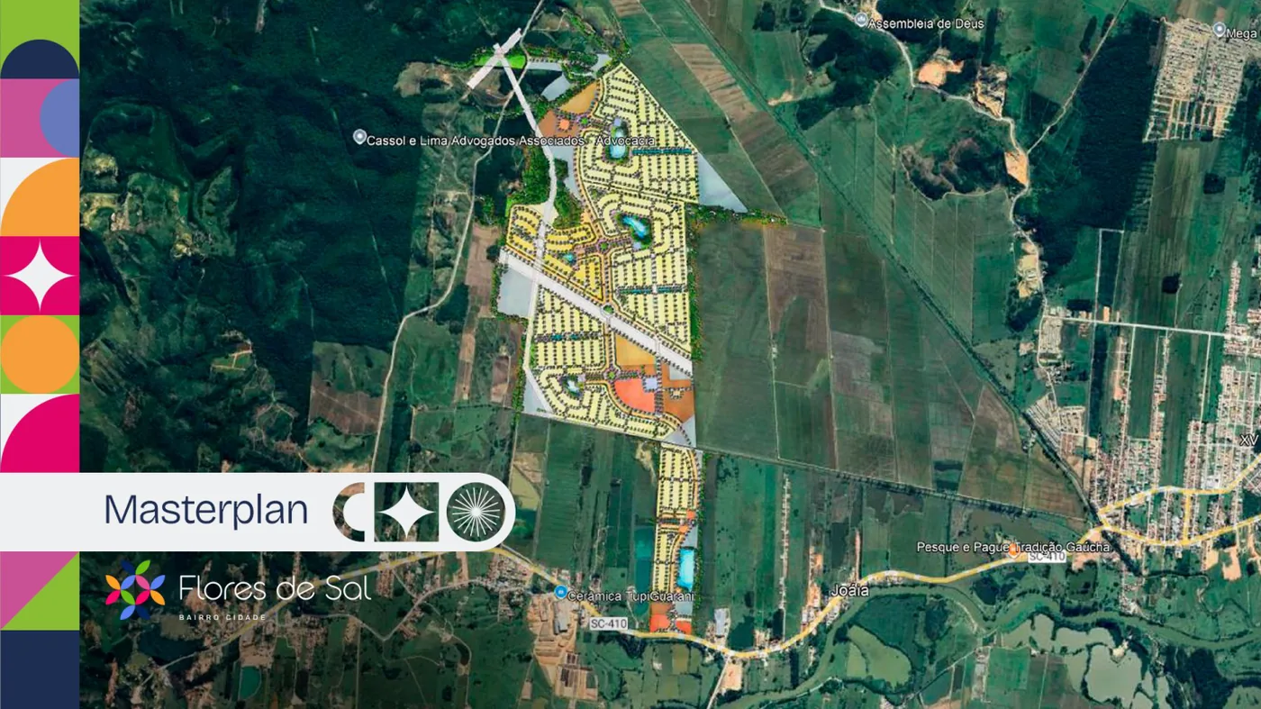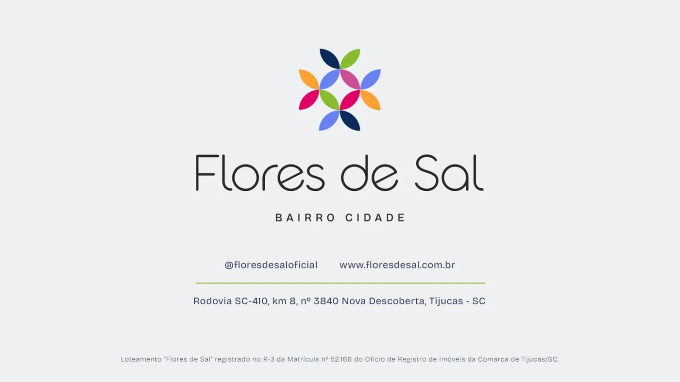 Flores de Sal em Tijucas/SC. Bairro cidade com áreas de lazer e verdes (conforme material). Confira o catálogo e a viabilidade de construção disponíveis para download na página.
